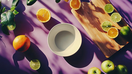 Citrus Slices on Bright Purple Background, Vibrant Fruit Arrangement