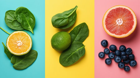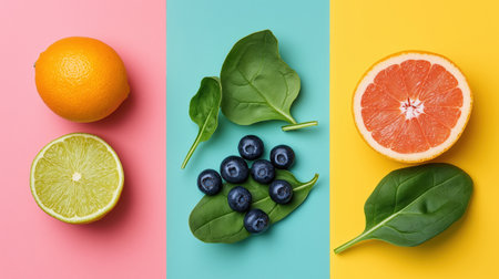 Discover the beauty of fresh produce with oranges limes blueberries and spinach showcasing vibrant colors that promote healthy eating and nutrition.