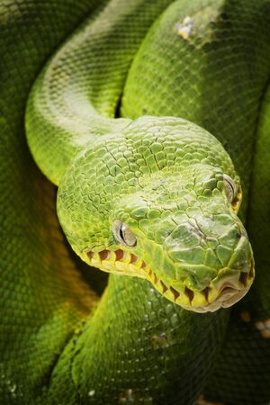 close-up of Emerald tree boa (Corallus caninus)