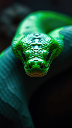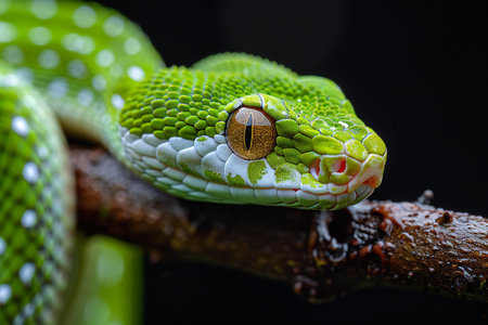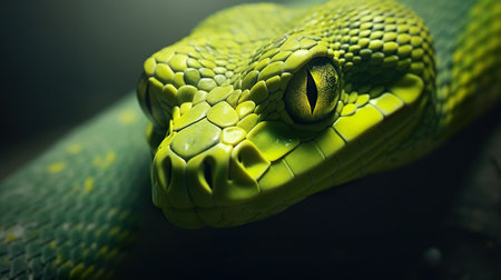 Green Tree Python Up Close Vibrant Scales of an Asian Reptile Against a Dark Background