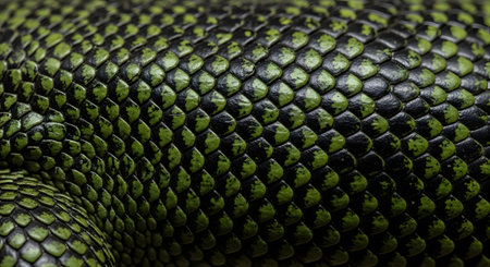 Close up of green snake skin texture background with selective focus and blur