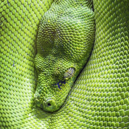 Close up of a green tree python (Reticulated python)