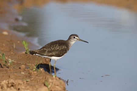 Green Sandpiper - small shorebird on lake shore