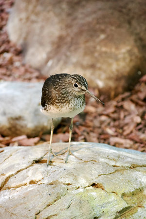 Very close up photo of wod sandpiper in natural habitat