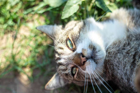Cute cat in the garden. Selective focus and shallow depth of field.