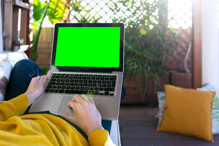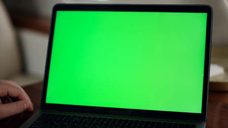 Unrecognizable man with a laptop with green screen