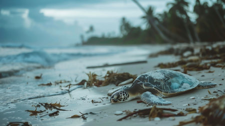 Dead turtle on the beach- Preserve the environment, protect marines animal- Pollution problem