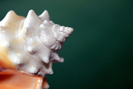 Old weathered conch shell background. Tropical sea conch wallpaper