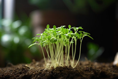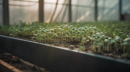 Generative AI A commercial microgreen farm using sustainable practices to produce a variety of premium greens.