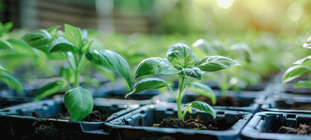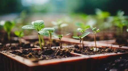 Vibrant potted plant seedlings in enriched soil, perfect for seamless transplant to garden beds