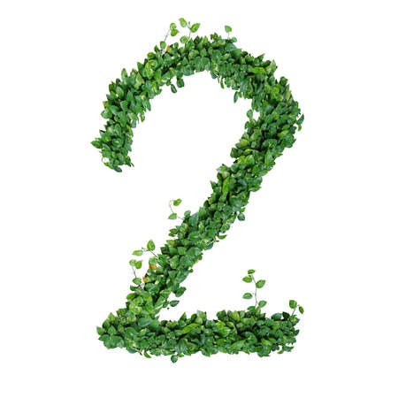 Foliage number 2, nature green leaves alphabet of devil's ivy or golden pothos, tropical money plant isolated on white background.