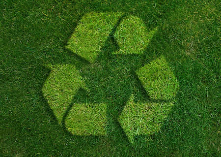 A recycling sign made of grass on a green textured background