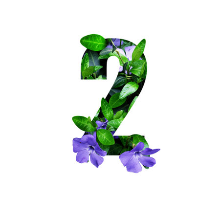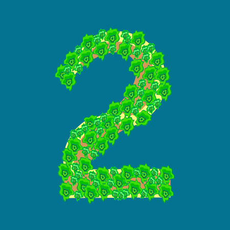 Number two from green leaves. Creative spring concept. Shape number two