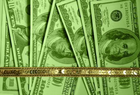 photographed new American dollars, piled in a heap. close-up