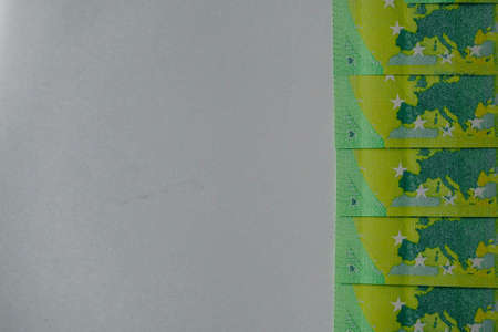 Selective focus on detail of euro banknotes. Close up macro detail of money banknotes, 20 euro isolated. World money concept, inflation and economy concept