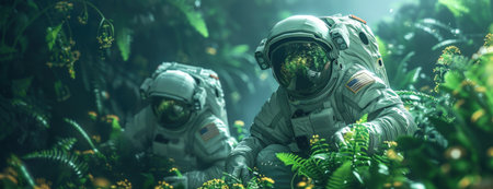 Extraterrestrial Research Expedition: High-Resolution Capture of Astronauts Examining Alien Biodiversity