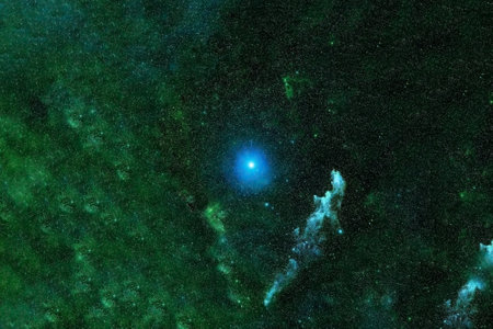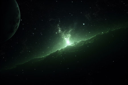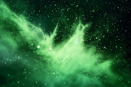 Glowing green nebula and stars in the night sky