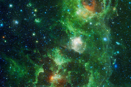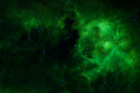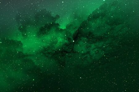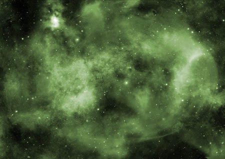 Abstract space background with nebulae and stars. Green nebula.