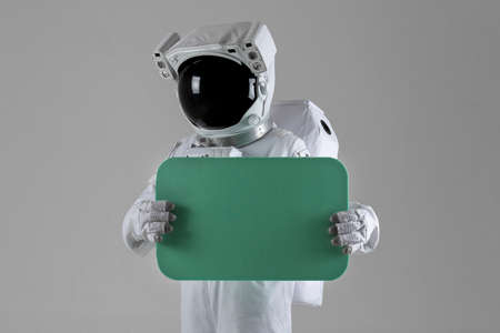 Astronaut holding an event banner, white background
