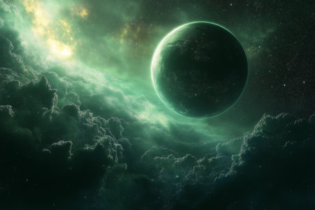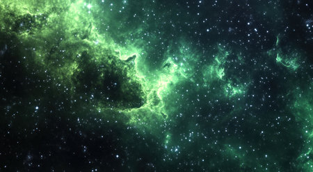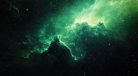 Space-themed background featuring a green nebula cloud, perfect for astronomical and fantasy designs