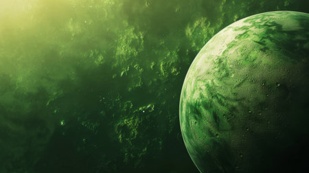 Image of green planet in green galaxy. Astronomy, cosmos, universe and space exploration concept digitally generated image.