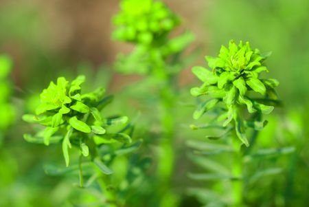 grove of Euphorbia flowers (Euphorbia amygdaloides). Euphorbiaceae