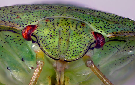 shield bug. head. insect portrait. colorful detailed macro photo of an insect. close-up. text space. compound eyes.
