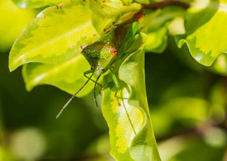 The green shield bug. Palomena prasina close-up.