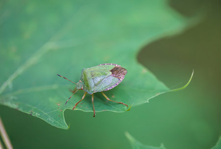 Green shield bug (Palomena prasina) on a leaf