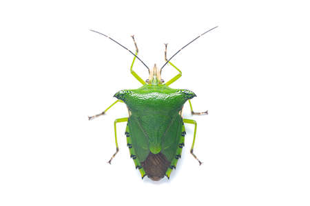 Green shield bug species Palomena prasina on white
