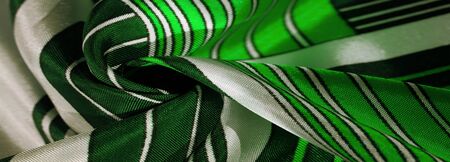 textured drawing, composite textiles, noble deep green silk fabric with a thin white stripe, the nature of some ingredients or components; the way the whole or mixture is composed.
