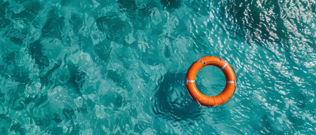 Vibrant Orange Lifebuoy in Crystal Clear Pool Water Bright Summer Day