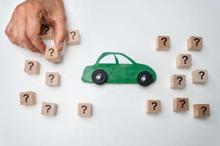 Person Hand Holding Question Mark Next To Car Model