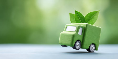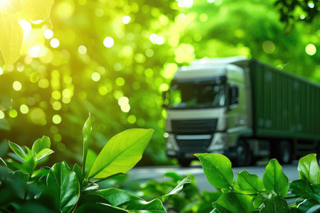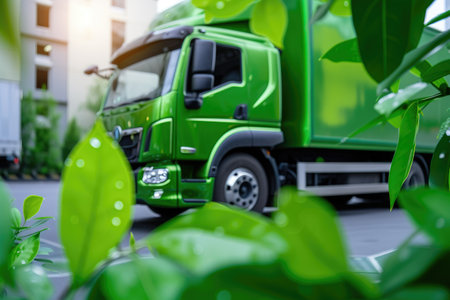 Green delivery truck with leaves symbolizes e commerce green globe sustainability and eco