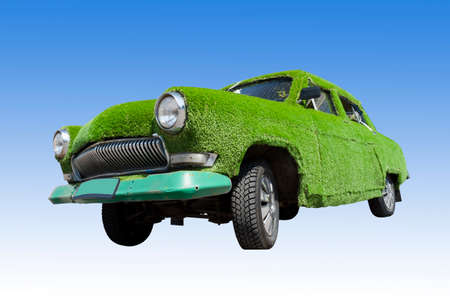 Ecology concept. Eco car on a green background. The concept of sustainable development. Copy space.