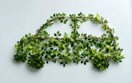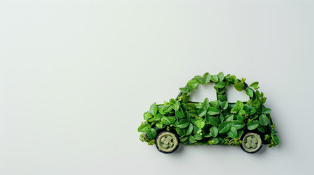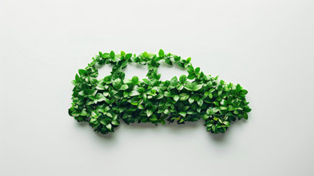 Car made of natural green plants. Eco friendly transportation. Zero emission and no pollution transport concept. Created with Generative AI