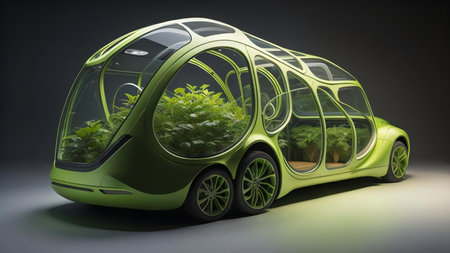Green car, electric and sustainable transportation conceptual illustration. Created using generative AI