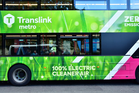Belfast; Northern Ireland - September 15 2022: electric bus in the picturesque city