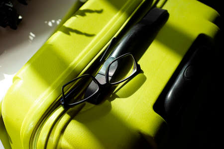 Elevate your summer style with a green suitcase against a matching background. A seamless blend of color, perfect for your vibrant and trendy summer concept.