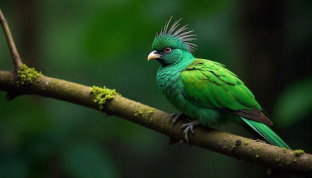 A Quetzal a brilliantly colored bird with long tail feathers in its lush and vibrant forest habitat