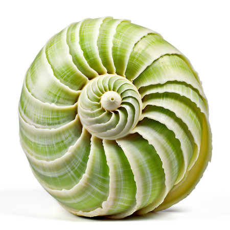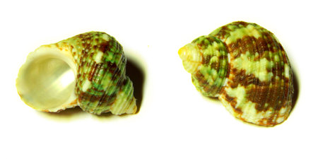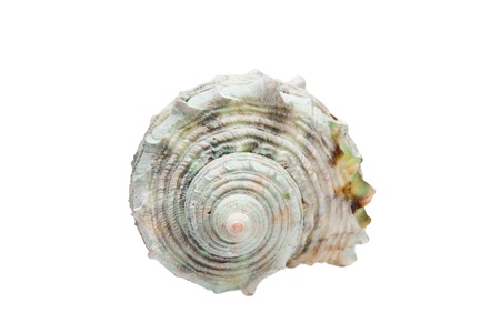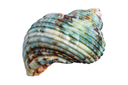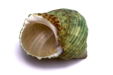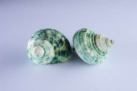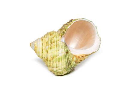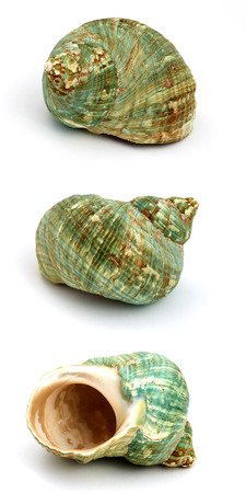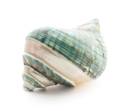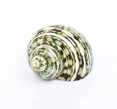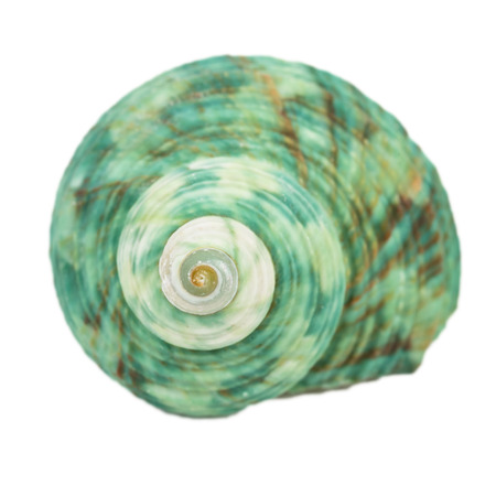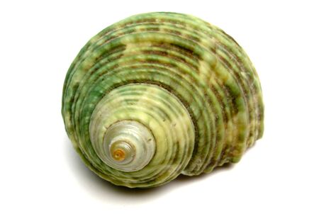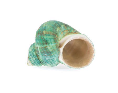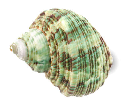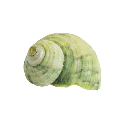 Image of green turbo sea shell on a white background. Undersea Animals. Sea shells.
