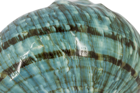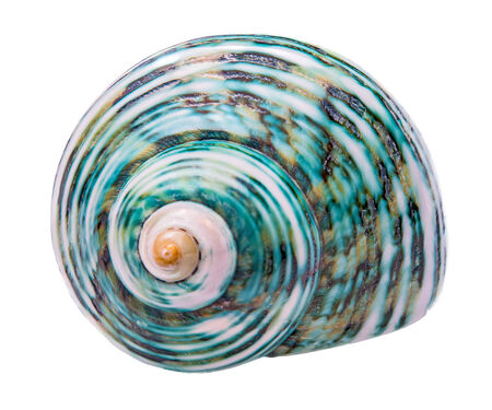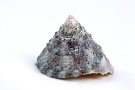 The multi-colored shell includes white, turquoise and brown. Isolated on a white background. Frontal view