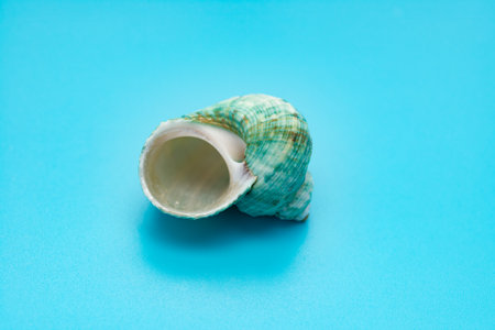 Beautifully detailed sea shell resting on a soft turquoise background, ideal for sea-themed designs, nature illustrations, and calming decor projects.