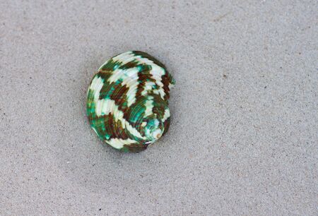 The multi-colored shell includes white, turquoise and brown. Isolated on a white background. Top view