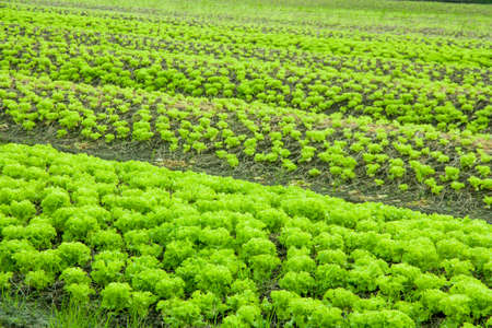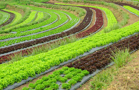Growing vegetables in the garden. lettuce patch in the vegetable field under sunshine.