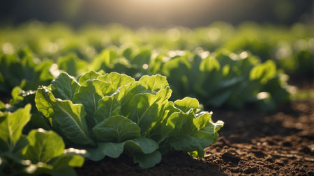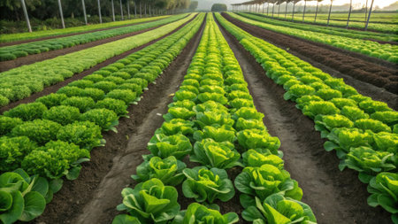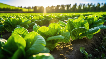 Organic Lettuce Field Sustainable Growth in Sunlight Generative AI