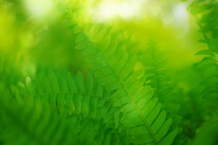 Green fern leaves on a blurred green background in the garden, background landscape natural green space, landscape, ecology, green wallpaper