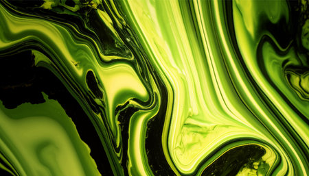 Close-up view of bright green abstract flowing ink on black background