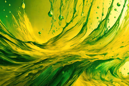 abstract green and yellow background with splashes and drops of oil
