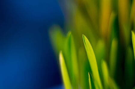 young green wheat in the morning,a photograph with shallow depth of field, a separate focus on a drop of dew. The rest of the space is suitable for placing text